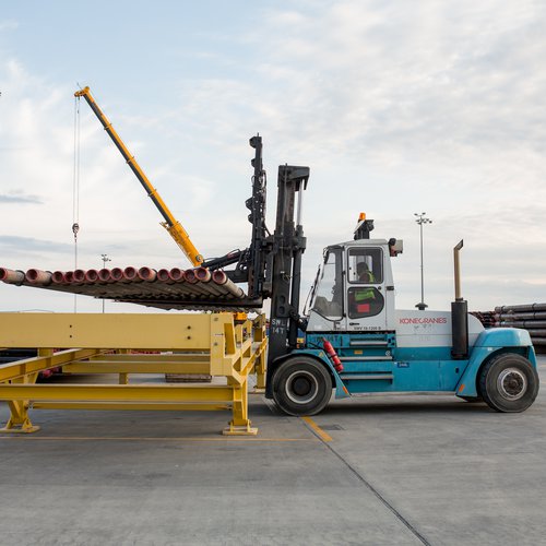 Logistics tasks of BOS Shelf Marine Base include timely loading and unloading of ships, ensuring uninterrupted support for the offshore operations.